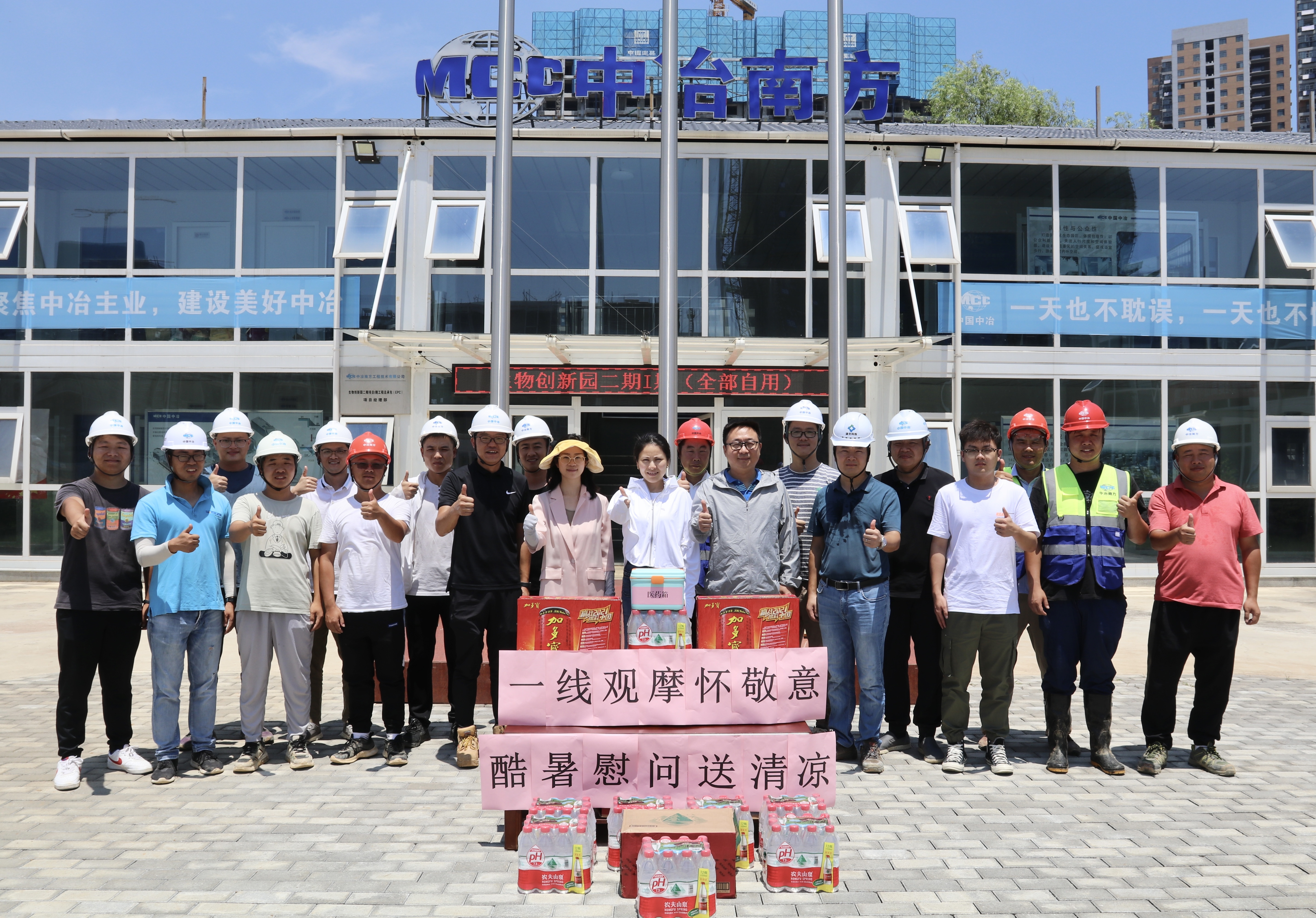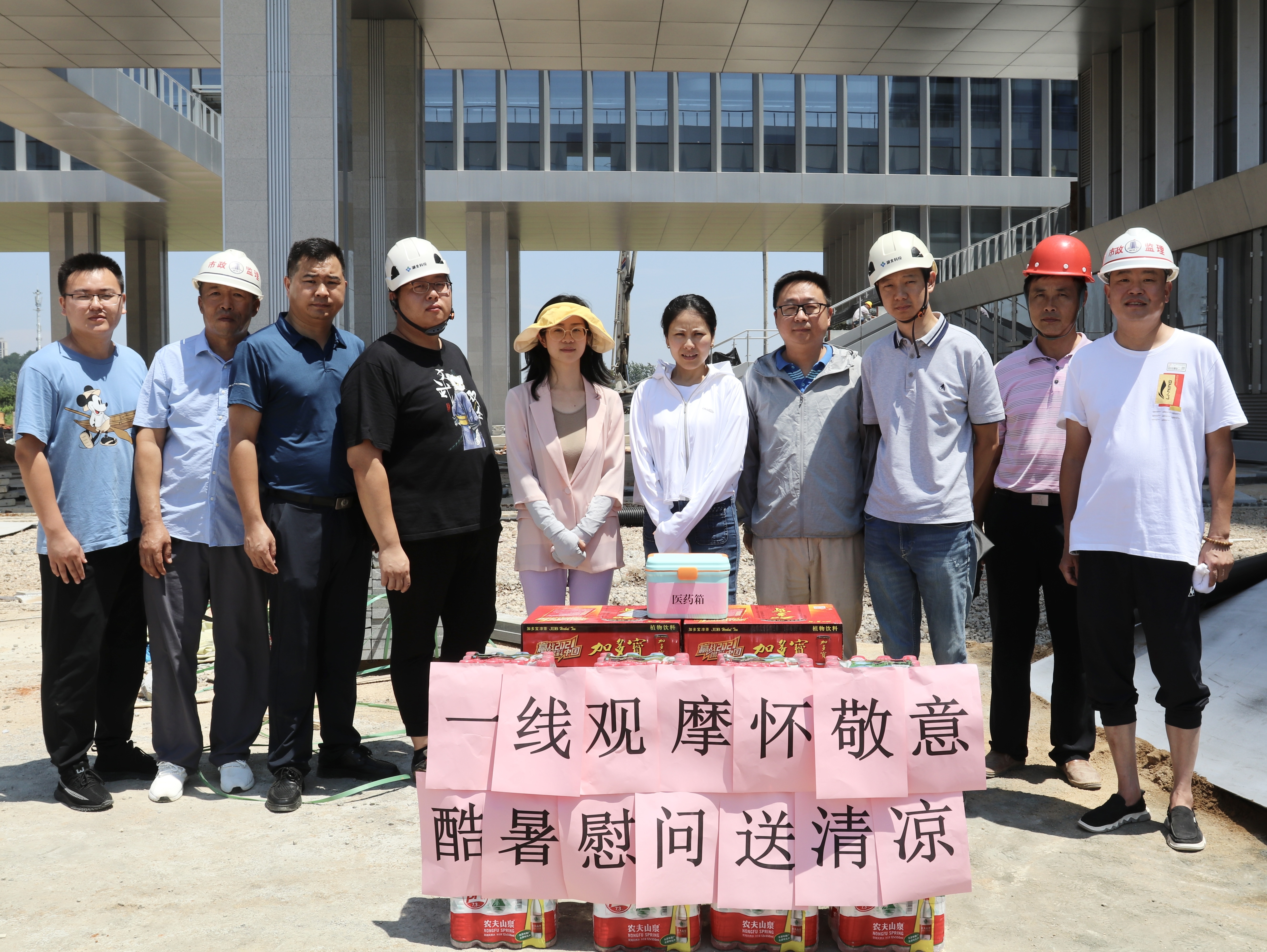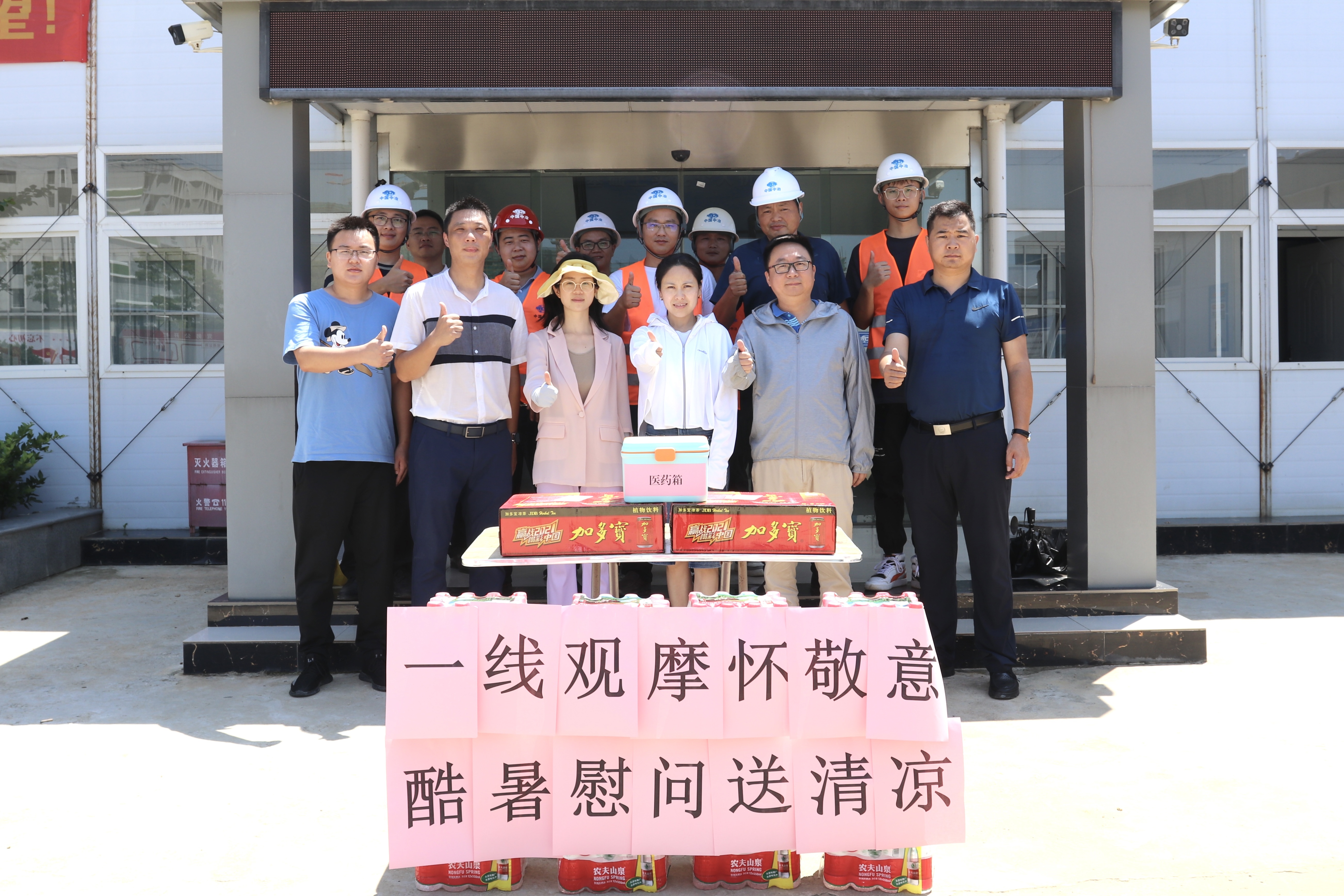 整洁卫生的施工场地、醒目的标语标识牌、文明安全的施工氛围,都是每一个驻扎在项目现场的员工克服重重困难共同努力出来的结果。一句句关心的话语,一份份慰问的物品,让一线驻场人员在酷暑中感受到无比清凉,在场的员工们纷纷表示将继续坚守岗位,尽职尽责,坚持不懈地迎战高温、抓进度、保质量、重安全,确保项目建设有序推进。