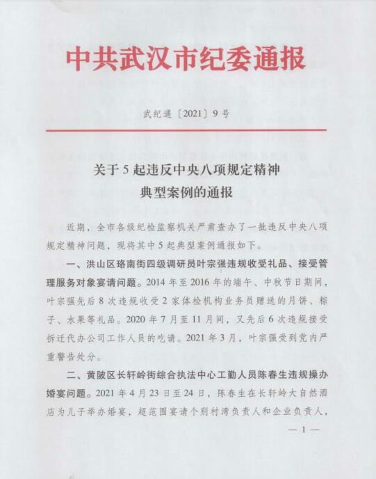 市纪委关于5起违反中央八项规定精神典型案例的通报