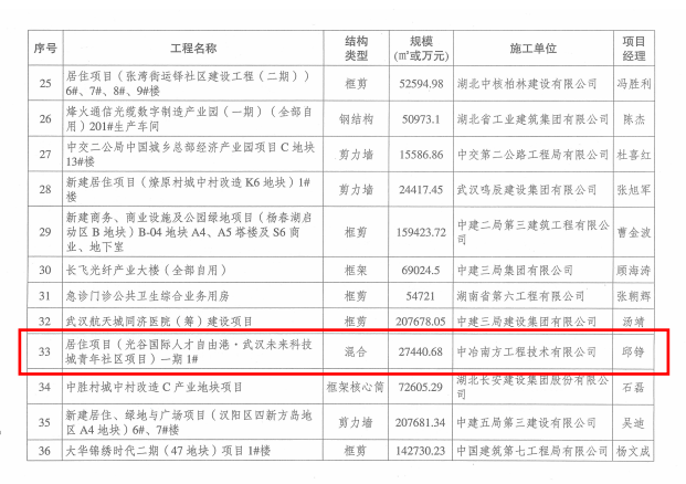 2022年底,在湖北省建设工程质量安全协会公布的2022-2023年度第一批湖北省建筑结构优质工程名单中,中国光谷·数字经济产业园(一期)、光谷国际人才自由港·武汉未来科技城青年社区项目(一期)均获得“湖北省建筑结构优质工程奖”。