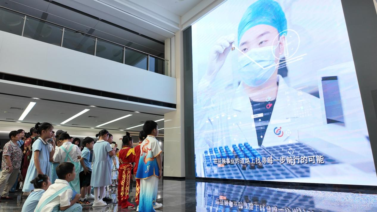 典礼结束,孩子们参与了一场最具特色的沉浸式课堂——揭秘基因库!在专业讲师的引领下,孩子们聆听着生命遗传的奥秘,观察精密仪器,将“智创星辰”的种子深植心田。
