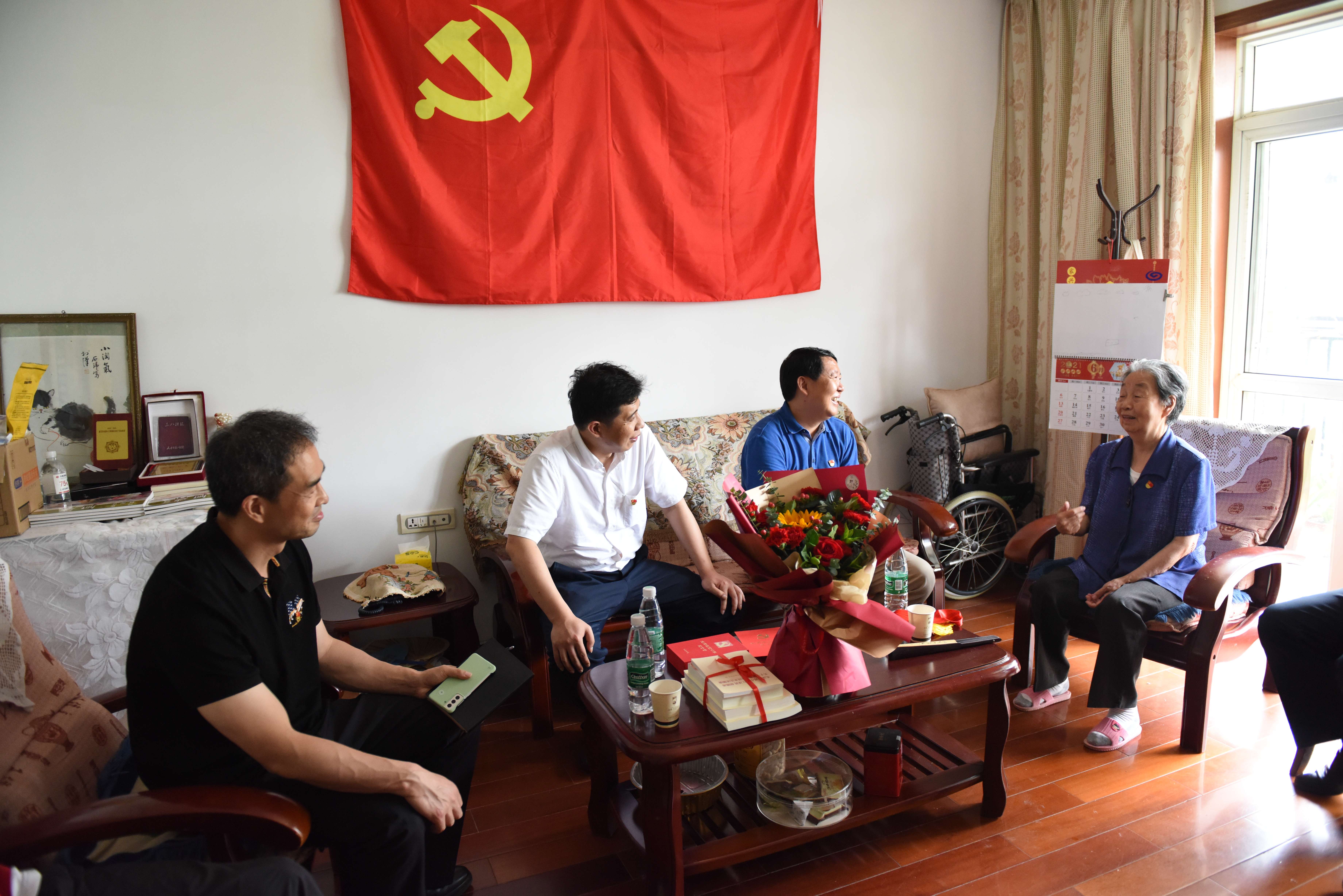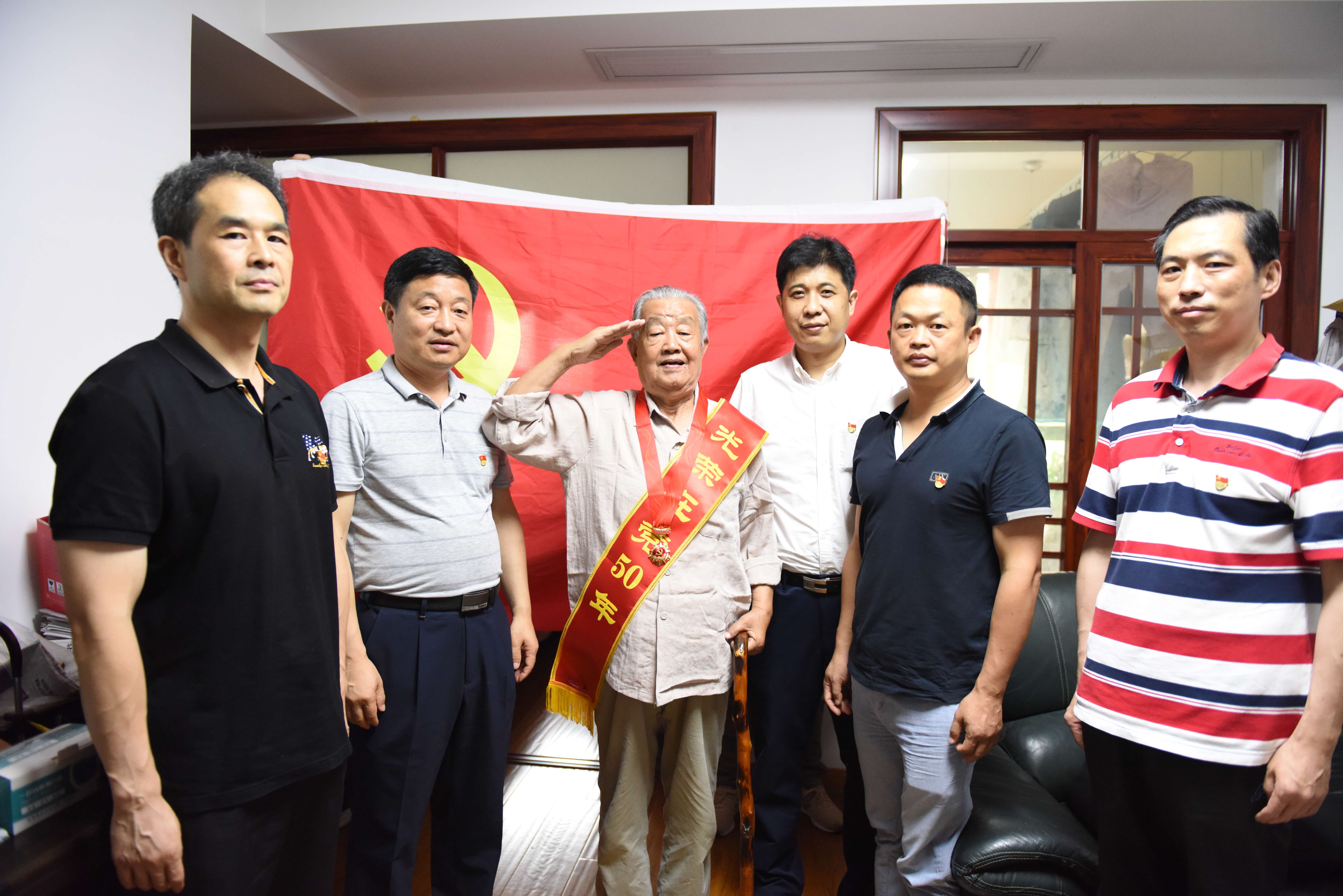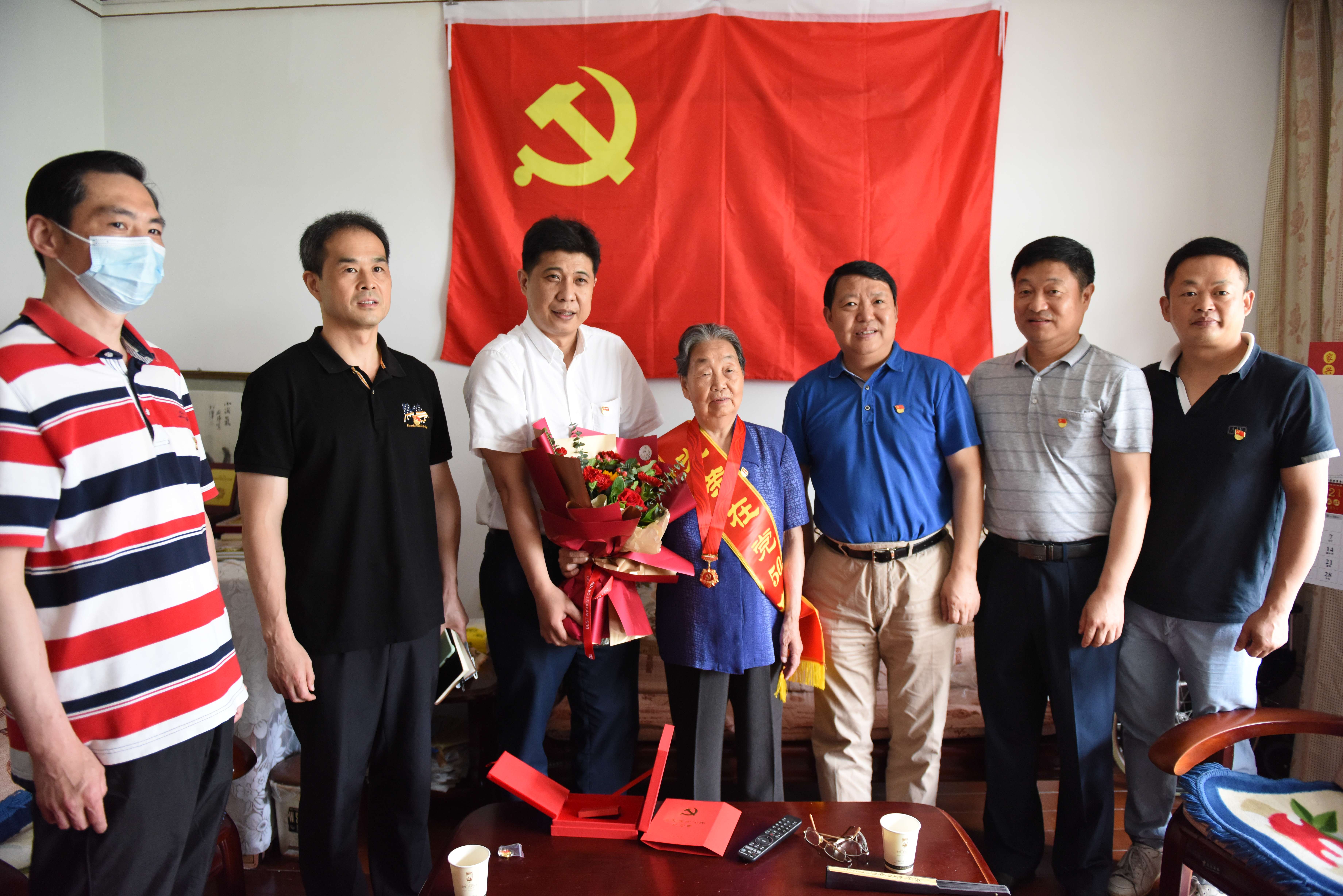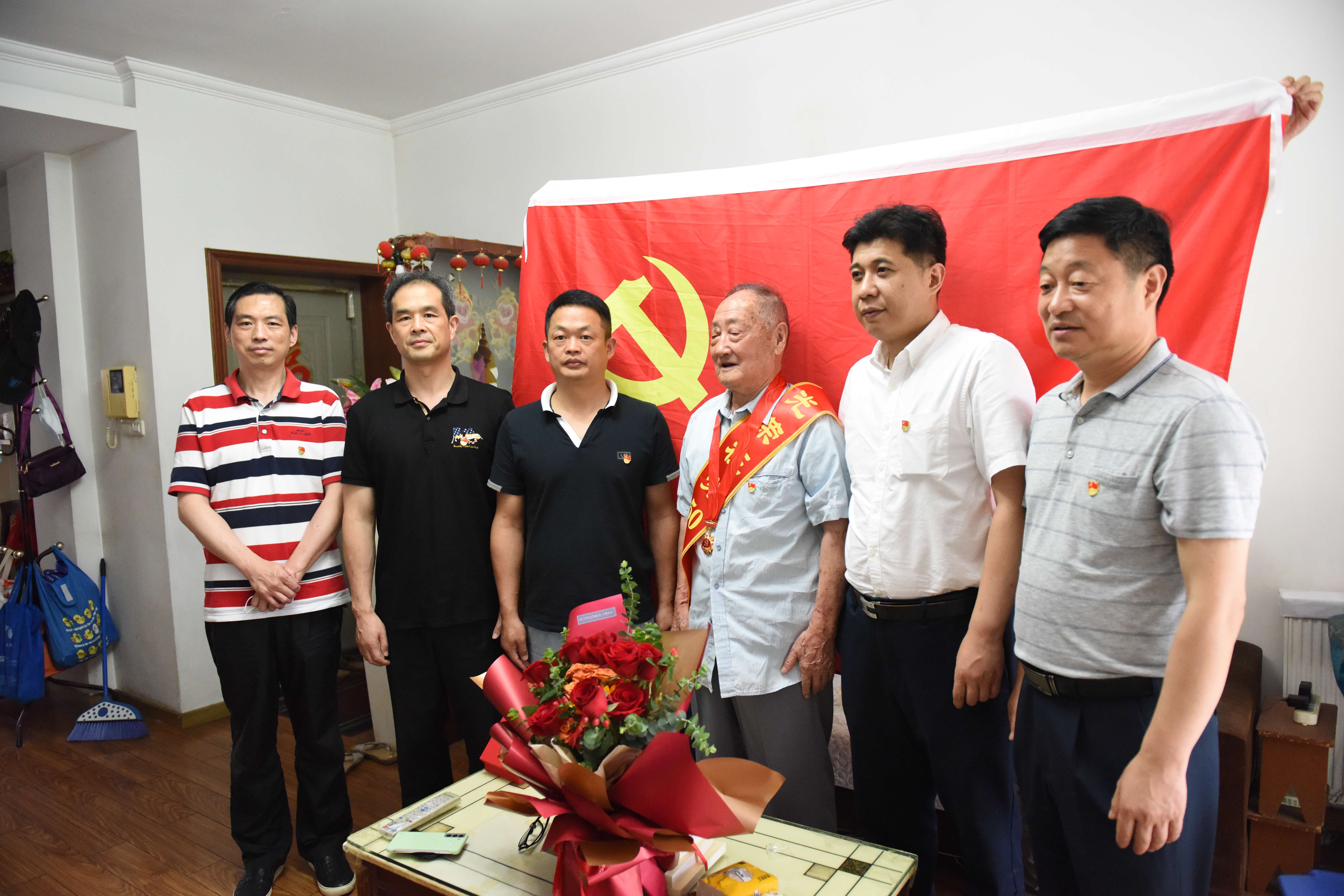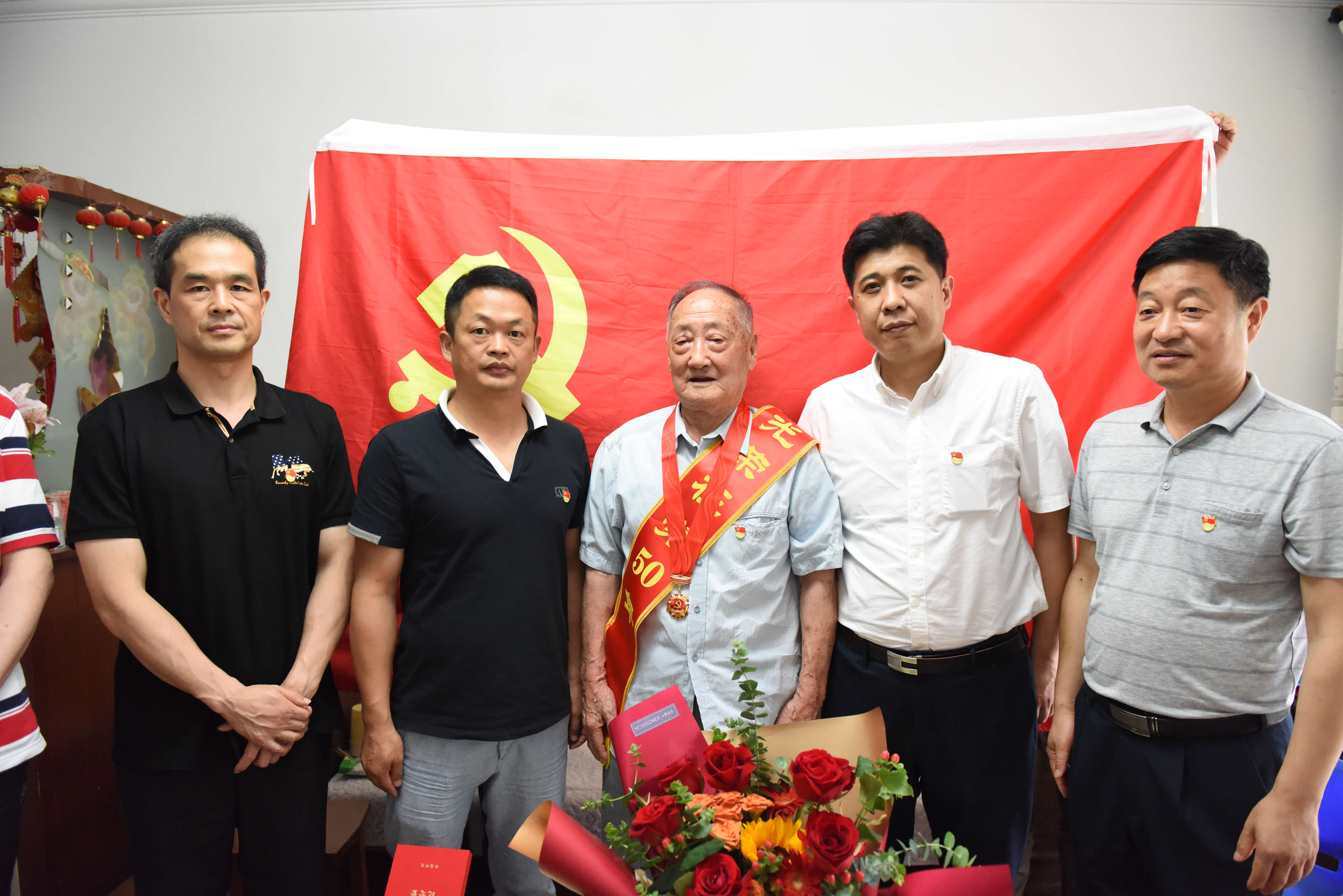 汪志忠一行首先来到老党员王彩平家中,为她举行了简朴而又庄重的颁发纪念章仪式,对她党龄达71周年表示祝贺,并向她一直以来为党的事业和公司发展作出的贡献表示感谢。