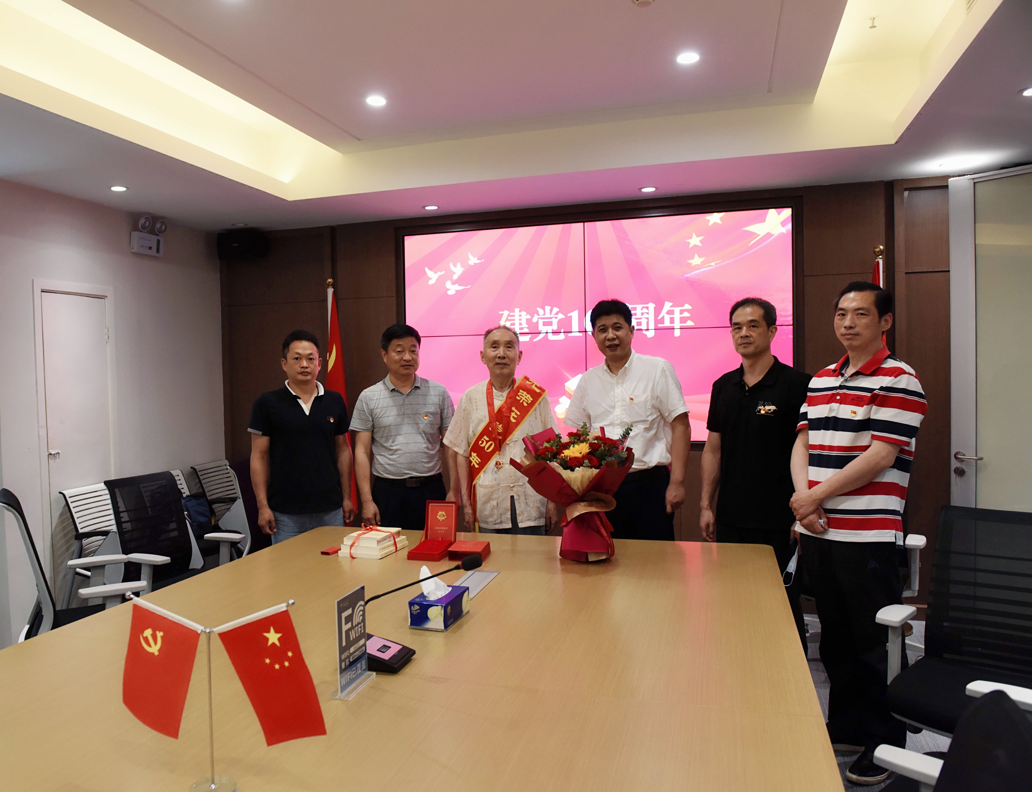 2021年6月18日,爱游戏ayx登录入口党委书记、董事长汪志忠率专班一行走访慰问集团所辖长江融达公司“光荣在党50年”的老党员,为老党员颁发纪念章和送去党史学习书籍。