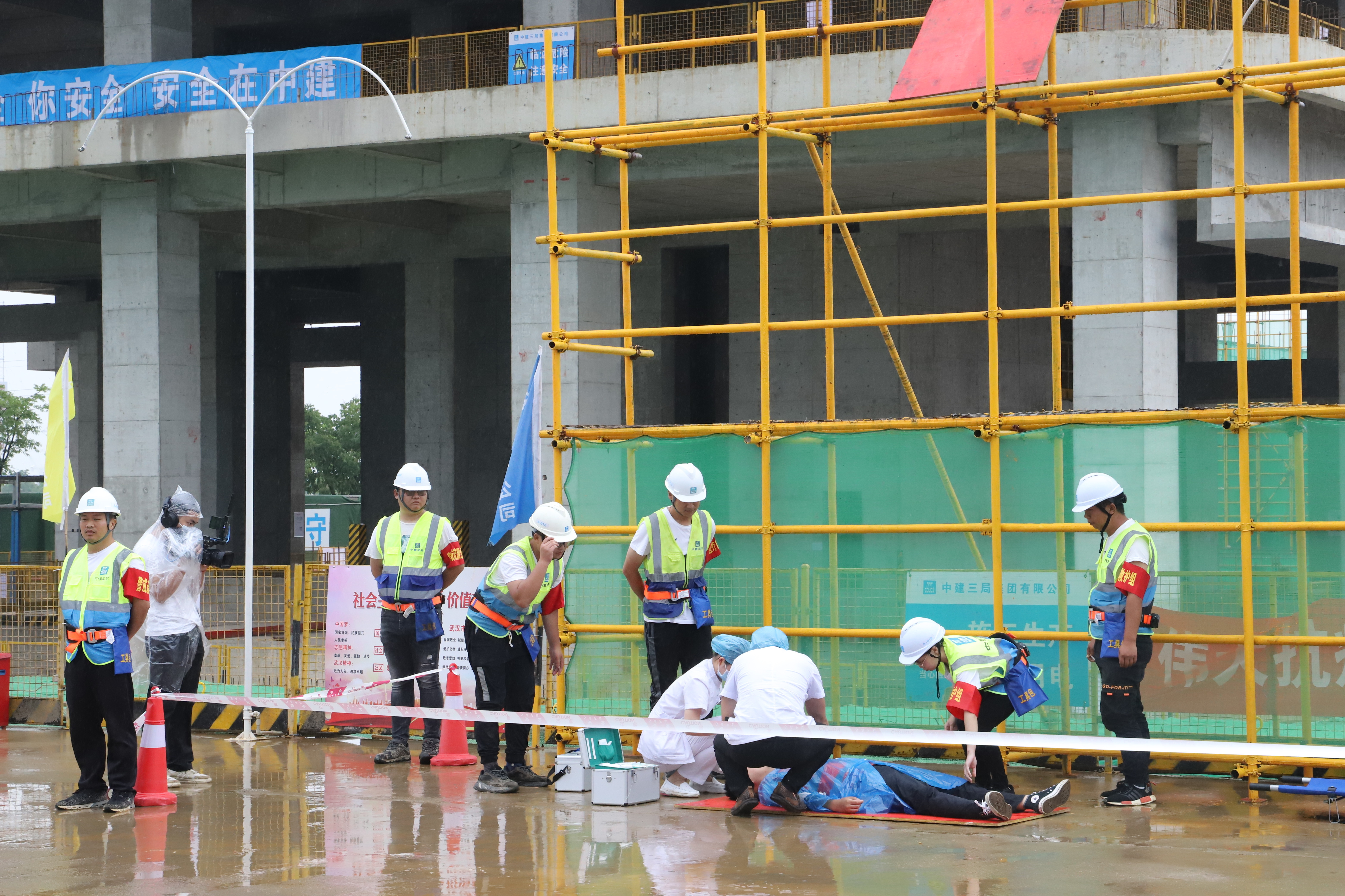 此次观摩会通过播放宣传片、安全宣讲以及防高坠实景演练形式展开。演练现场围绕处理高处坠落事故模拟了事故救援全过程。包括现场安全员和救援小组应急指挥,对受伤施工人员及时进行伤口处理与救治,医护人员赶到事故现场最后送往医院急救。整个过程流畅规范,演练人员在最短时间内对突发事故进行了及时有效处理。本次现场应急救援演练工作给大家上了一堂生动的安全课,使参会人员全面了解了应急救援的运行程序和处理方法,为控制事故扩大、及时应急救援提供了良好借鉴。